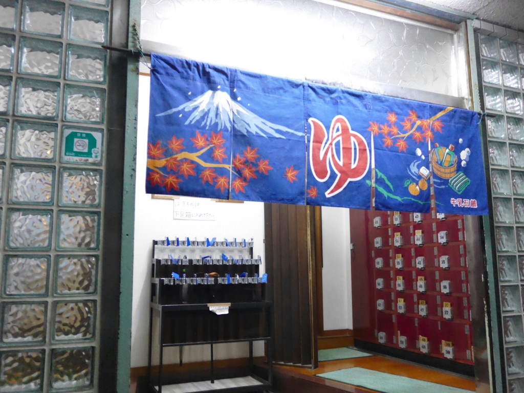 「ゆ」と書かれた蒼い暖簾が妙に朗るい。